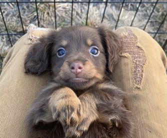 Dachshund puppies include wirehaired, smooth, and longhaired coat varieties. Coat types may vary depending on the parent dogs.