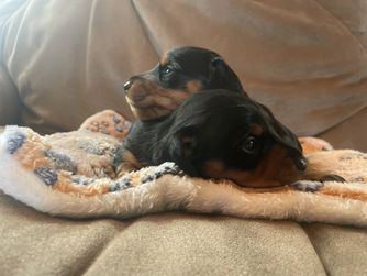 Dachshund puppies include miniature and standard sizes. Sizes will vary depending on the parent dogs.