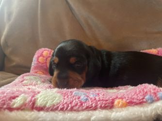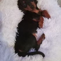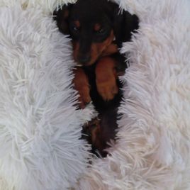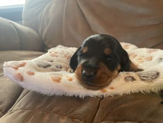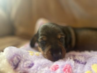 Out of all the breeders I researched, Chontell had the perfect black and tan dachsund I was looking for. His markings are incredible and what a personality. Tanner is my best friend and spoiled rotten to the core. Good job Chontell.