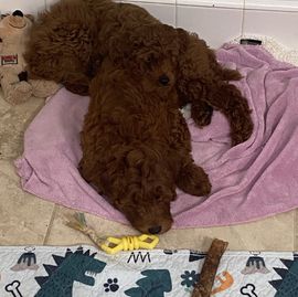 I had such a great experience with Julie! She was always quick to respond to my messages and addressed any concerns I had, which gave me a lot of peace of mind throughout the process. She was also very flexible with arranging the pick-up, making everything so easy and stress-free. Our Teddy is now 4 months old and he's absolutely wonderful—healthy, happy, and adjusting so well. Training is going great, and he's already such a sweet and smart addition to our family. It’s clear he came from a loving and attentive environment. I couldn’t be happier with the whole experience, and I would highly recommend Julie to anyone looking for a puppy. You can really tell she cares about both her dogs and the families they go to.