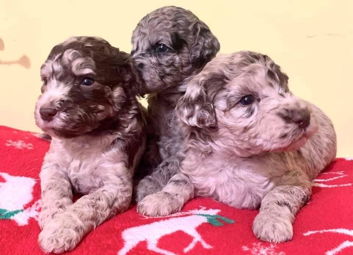 Our puppies include cream, apricot, red, chocolate, black, phantom, merle, and parti. Colors will vary depending on the parent dogs.