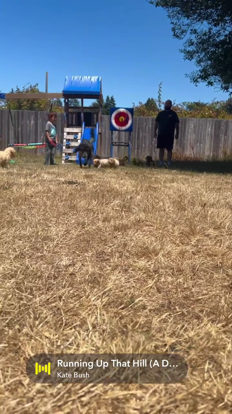 The puppies love to play chase the frank(our pug) around the yard. And yes frank loves it. He is in love with all the puppies and always trying to play with them.