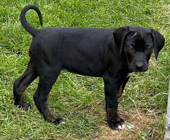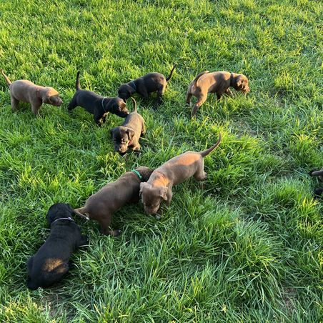 Jet is a well mannered, willing to please guy. He has a nice blocky stature and larger size. I can’t say enough good about this guy. He loves people, swimming, running, and always has his nose to the ground. Has done well with blood trailing training I’ve done so far.