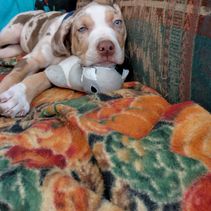 Catch is a sweet boy with a nice big build. He loves his people and he loves swimming. I have started him on blood trailing since I got him in September and he’s done well.
