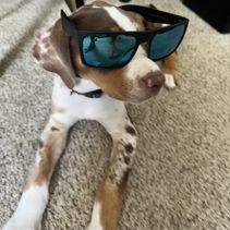 Val. Boy, she’s a catahoula. She does everything with enthusiasm, goofiness, and she’s just a happy dog. She thrives off people and wants all the pets and attention. She is willing to please and is smart as a whip.