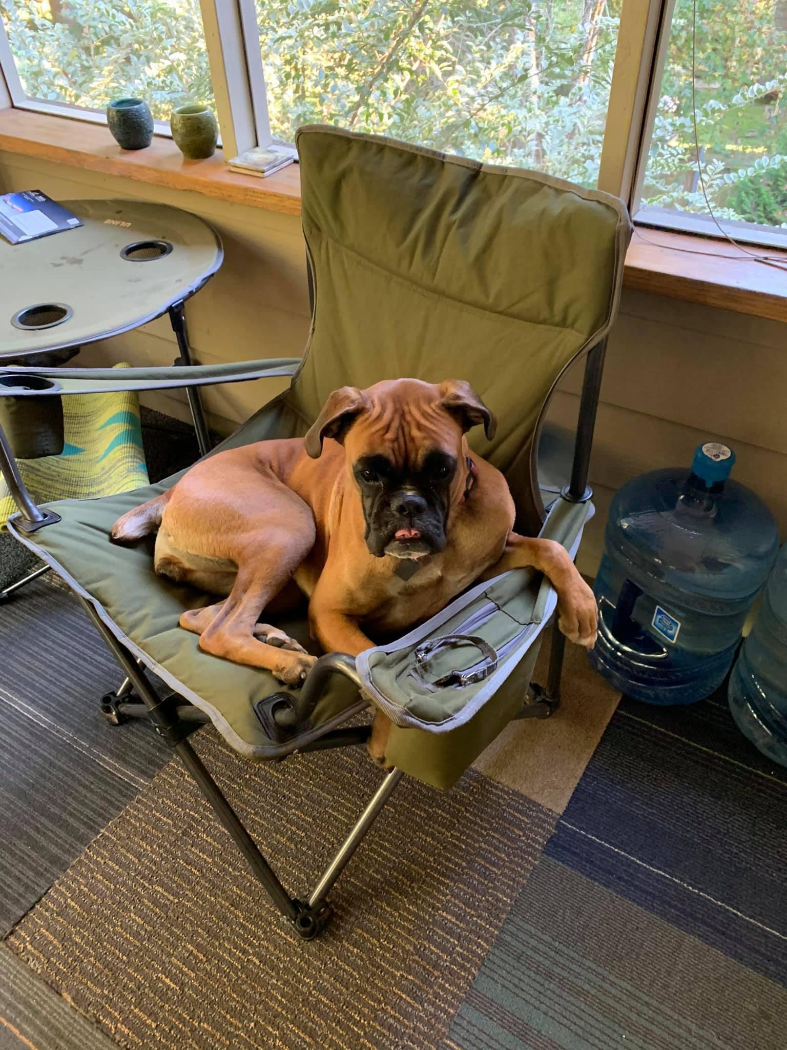 Mia is a female Boxer. Carefully selected as a great representative of her breed, Amy decided to make her part of their program. Amy has passed Good Dog’s screening process, which involved a review of their breeding practices, environment, and the mental and physical health of their dogs.
