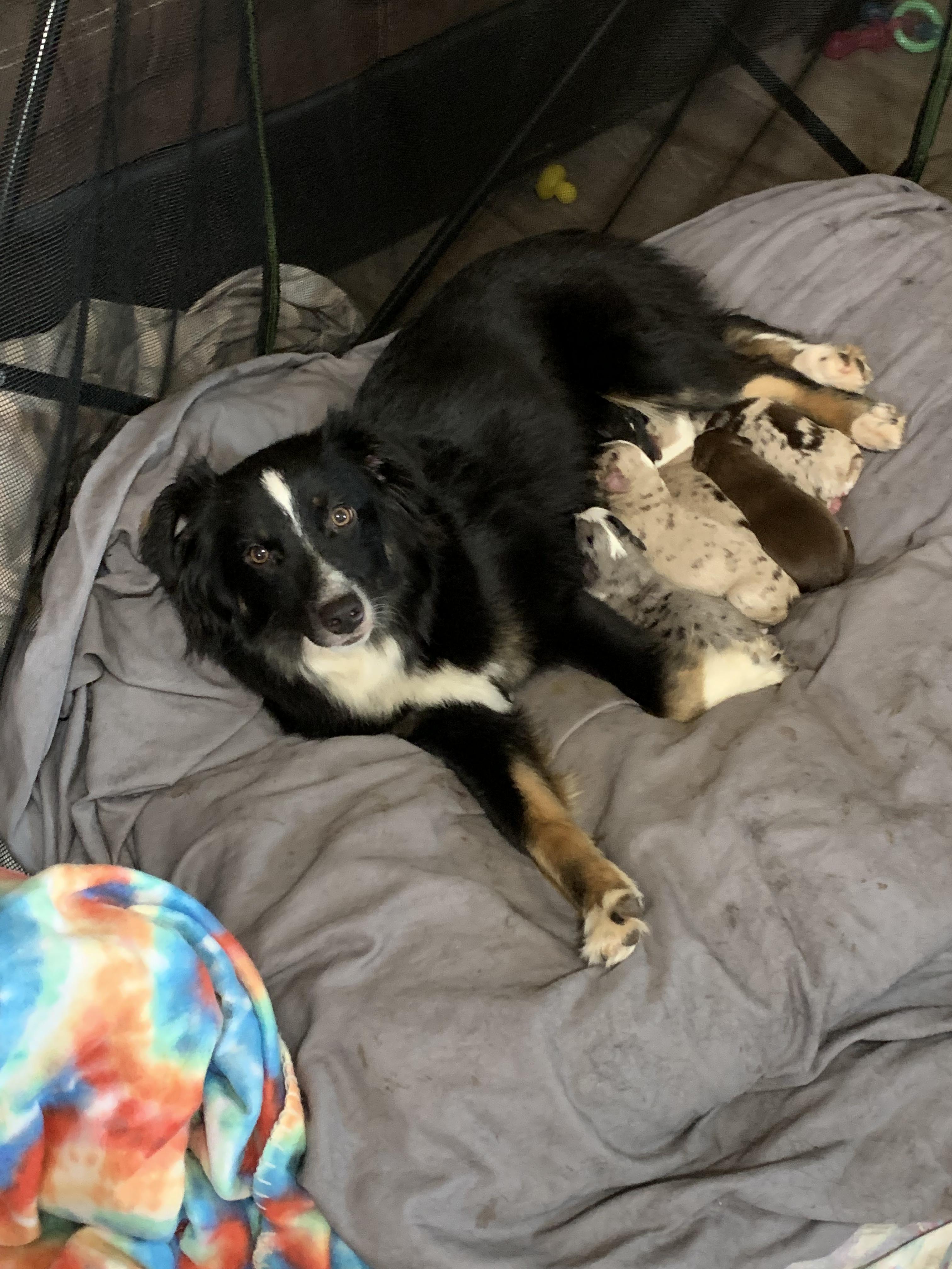 I have had Aussies for a really long time. I am passionate about this breed and I started my program because I wanted to put my passion to good use! I bought a gorgeous puppy from another breeder who's my mentor as well. It's been a joyful commitment, and it is a pleasure to live with, work with, and share with others these wonderful dogs!