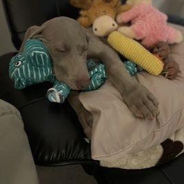 I was very lucky to find Emerald and North Georgia Weims on the Good Dog app. Emerald answered all of my questions and was very patient and responsive. She worked with my schedule and gave me the sweetest and smartest little girl. I will always be thankful to Emerald and North Georgia Weims. Full endorsement and recommendation to anyone looking for their new Weimaraner companion.