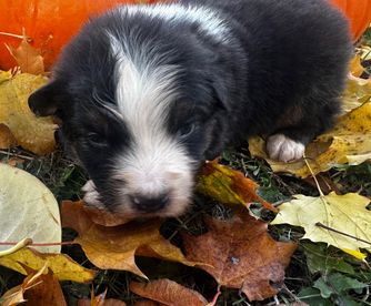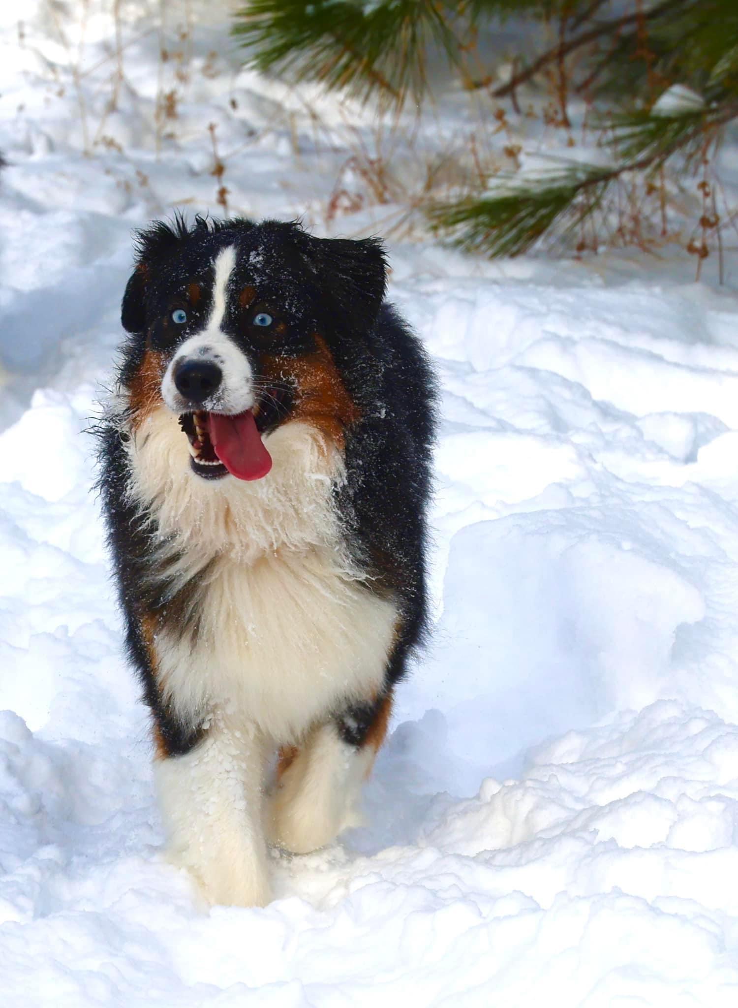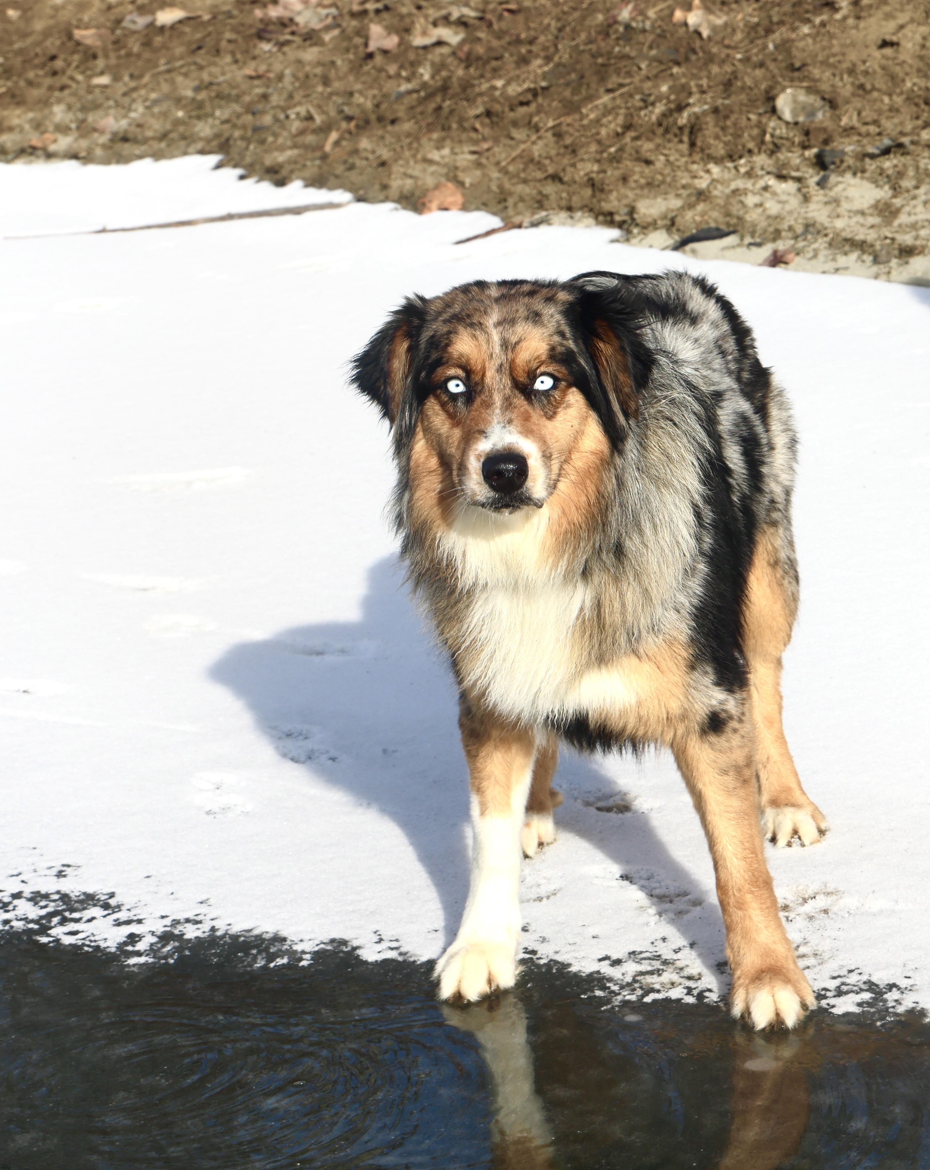 Tazlina "Taz" gets her name from the beautiful Tazlina Glacier just north of Valdez in Alaska. She is a perfect black tri with an incredible coat and a loving, happy personality. Full panel clear on her genetic tests, red factored, a carrier of the blue eyed black tri trait along with being a carrier of a blonde factor tri trait as well. Besides being part of AKC she is also part of the Australian Shepherd Club of America.