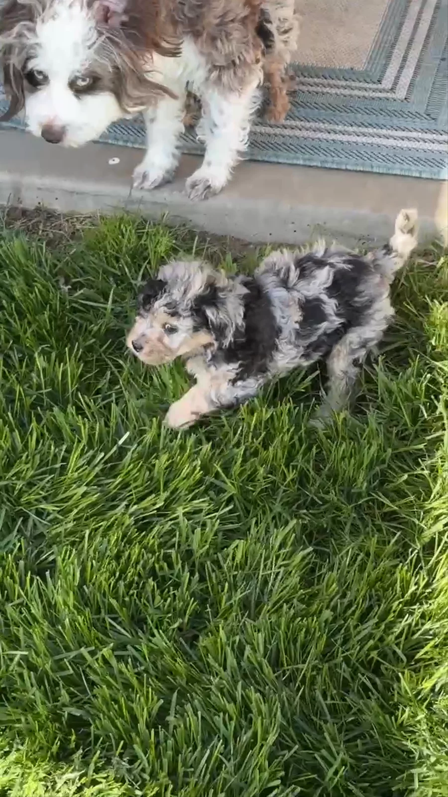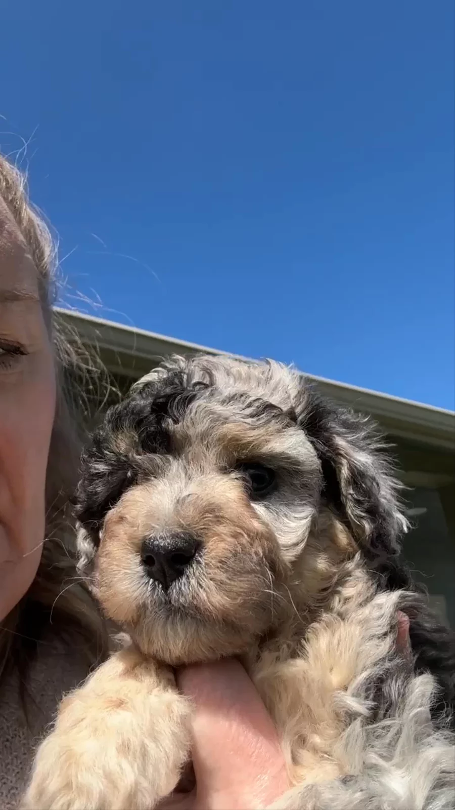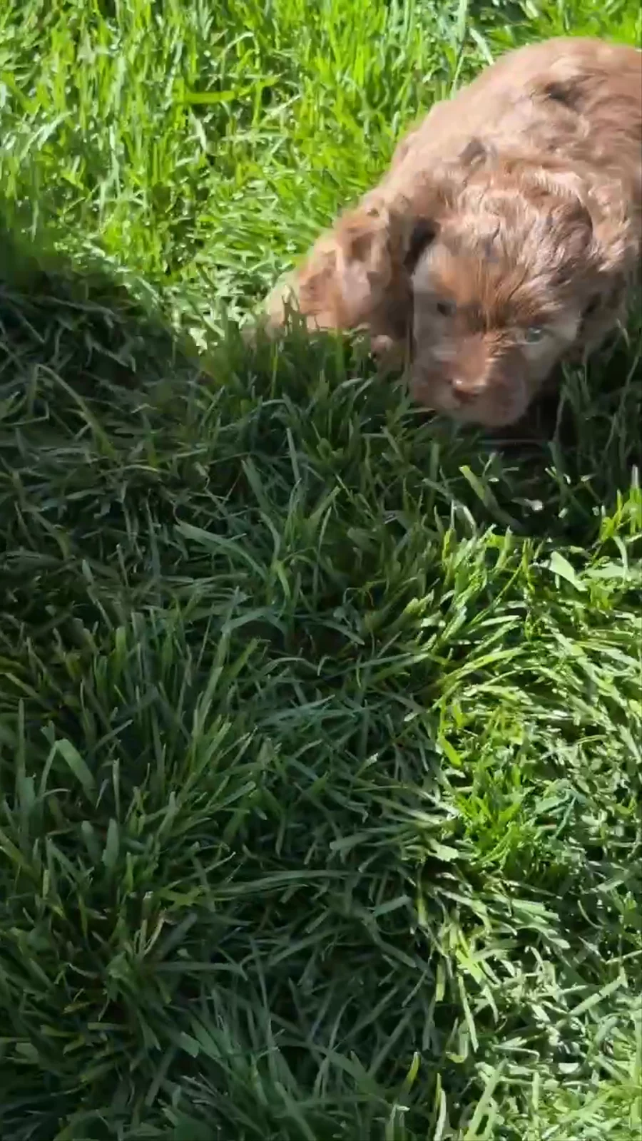 Meet Daisy Daisy is a stunning F1 Miniature Aussiedoodle with a personality as unforgettable as her striking looks. With her intense blue eyes that seem to look right through you, she has a way of connecting deeply and instantly with everyone she meets. Playful and full of life, Daisy loves nothing more than to show off her zoomies, bounding around with joyful energy and a sparkle in her eye. She’s naturally inquisitive and curious, always eager to explore her surroundings and figure out what’s going on. But don’t let her high energy fool you — Daisy is just as happy to curl up close, snuggle in, and soak up all the love you can give. She thrives on connection and adores being as close as possible to her people, proving time and again just how incredibly sweet, affectionate, and loving she truly is. Her temperament makes her the perfect combination of fun, brains, and devotion — qualities we’re proud to see her pass on to her puppies. Daisy in a few words: *Brilliant, icy-blue eyes and a soulful gaze *Playful, energetic, and full of zoomies *Sweet, gentle, and endlessly loving *Inquisitive and curious, always learning *The ultimate snuggle buddy and loyal companion Daisy embodies everything we love about the Miniature Aussiedoodle: intelligence, playfulness, beauty, and a heart of gold.