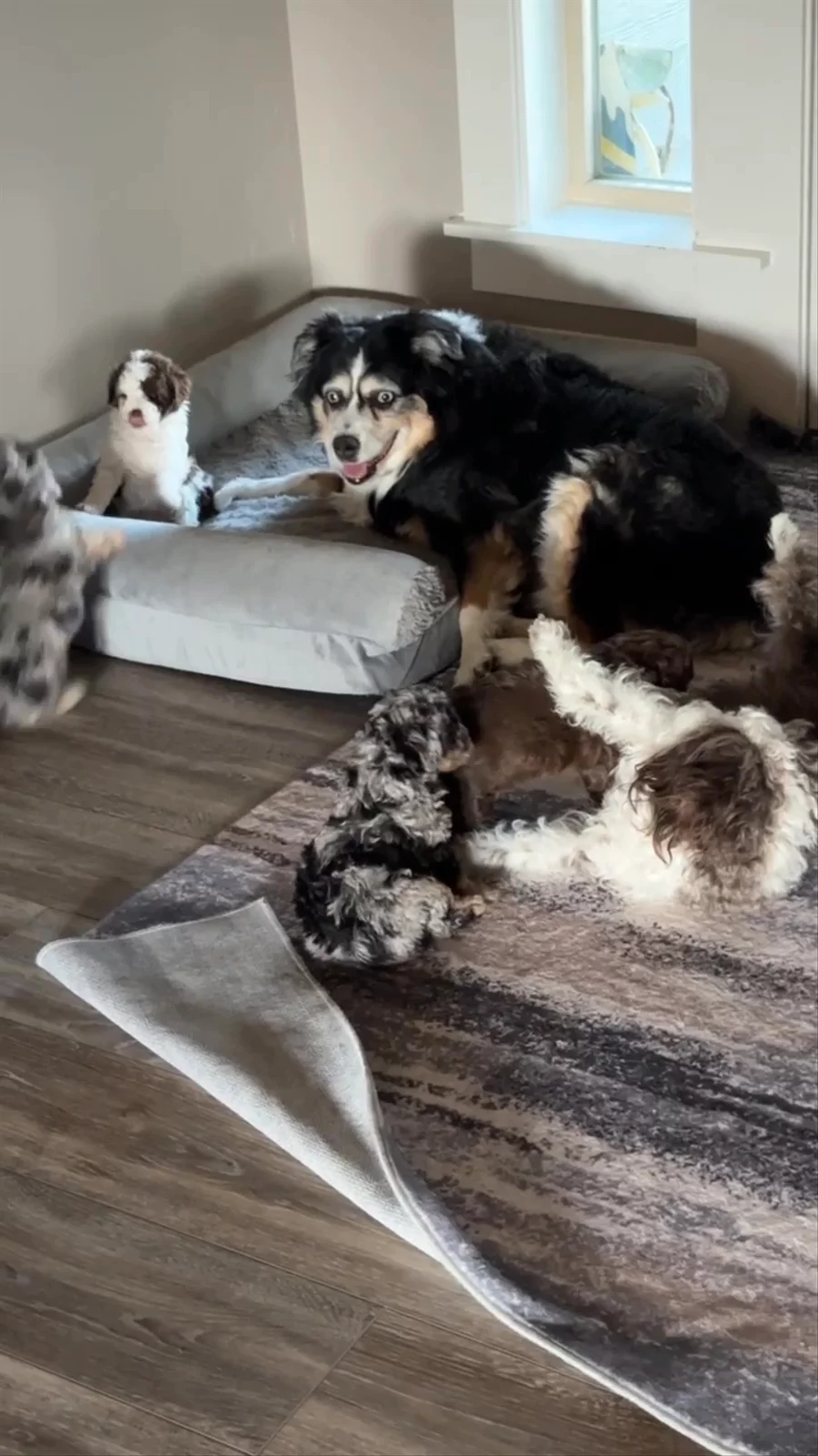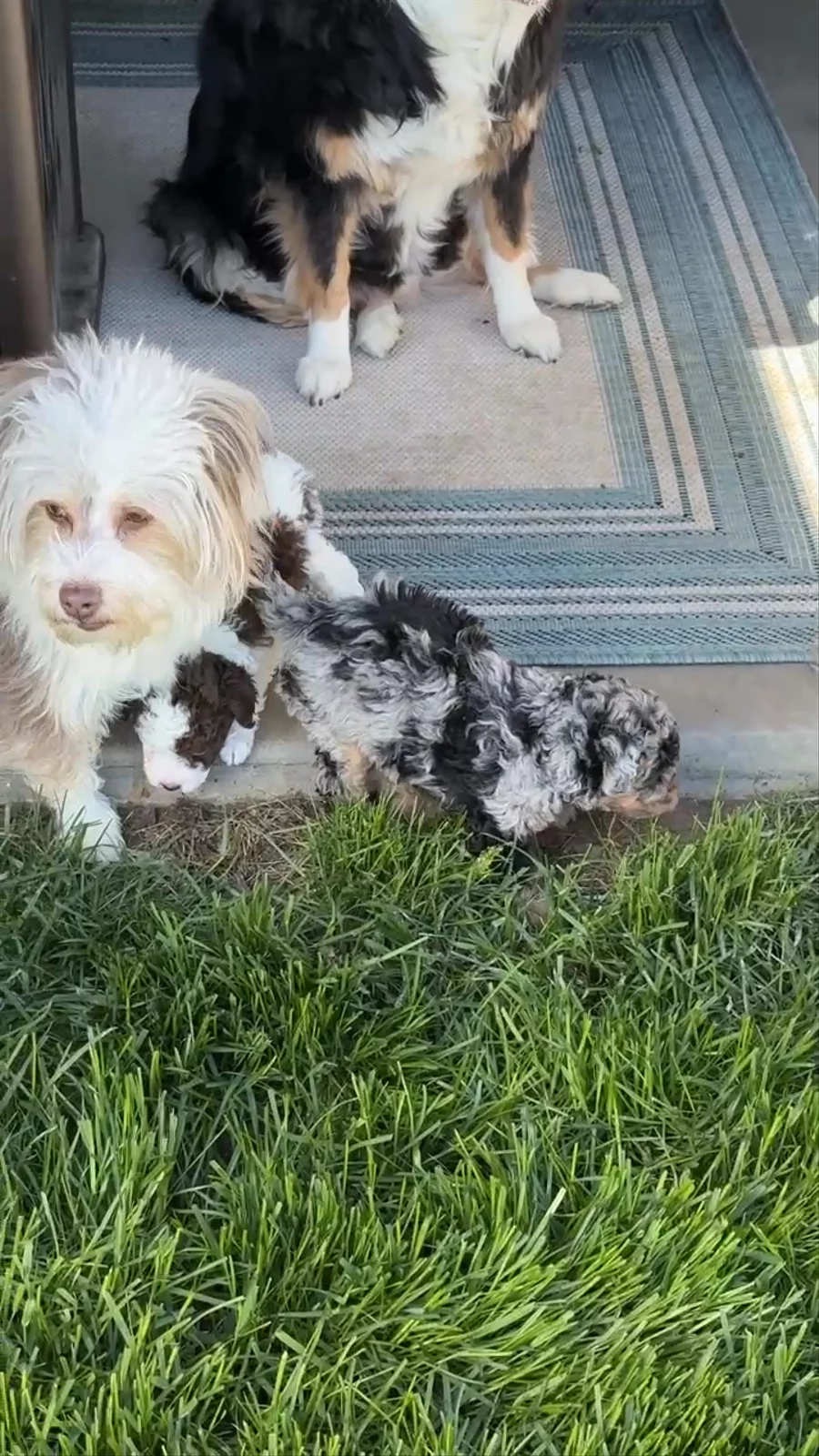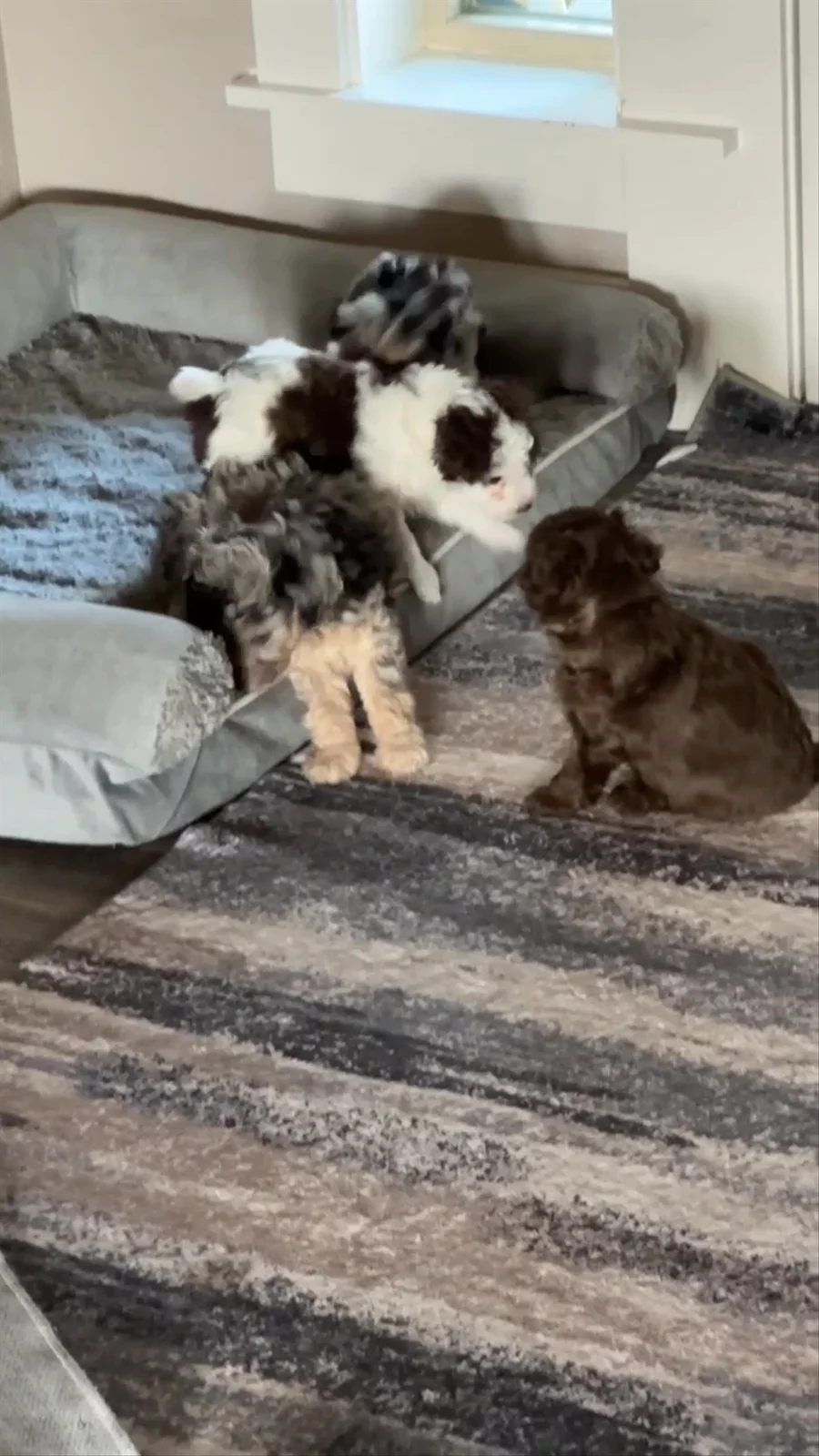 Meet Daisy Daisy is a stunning F1 Miniature Aussiedoodle with a personality as unforgettable as her striking looks. With her intense blue eyes that seem to look right through you, she has a way of connecting deeply and instantly with everyone she meets. Playful and full of life, Daisy loves nothing more than to show off her zoomies, bounding around with joyful energy and a sparkle in her eye. She’s naturally inquisitive and curious, always eager to explore her surroundings and figure out what’s going on. But don’t let her high energy fool you — Daisy is just as happy to curl up close, snuggle in, and soak up all the love you can give. She thrives on connection and adores being as close as possible to her people, proving time and again just how incredibly sweet, affectionate, and loving she truly is. Her temperament makes her the perfect combination of fun, brains, and devotion — qualities we’re proud to see her pass on to her puppies. Daisy in a few words: *Brilliant, icy-blue eyes and a soulful gaze *Playful, energetic, and full of zoomies *Sweet, gentle, and endlessly loving *Inquisitive and curious, always learning *The ultimate snuggle buddy and loyal companion Daisy embodies everything we love about the Miniature Aussiedoodle: intelligence, playfulness, beauty, and a heart of gold.
