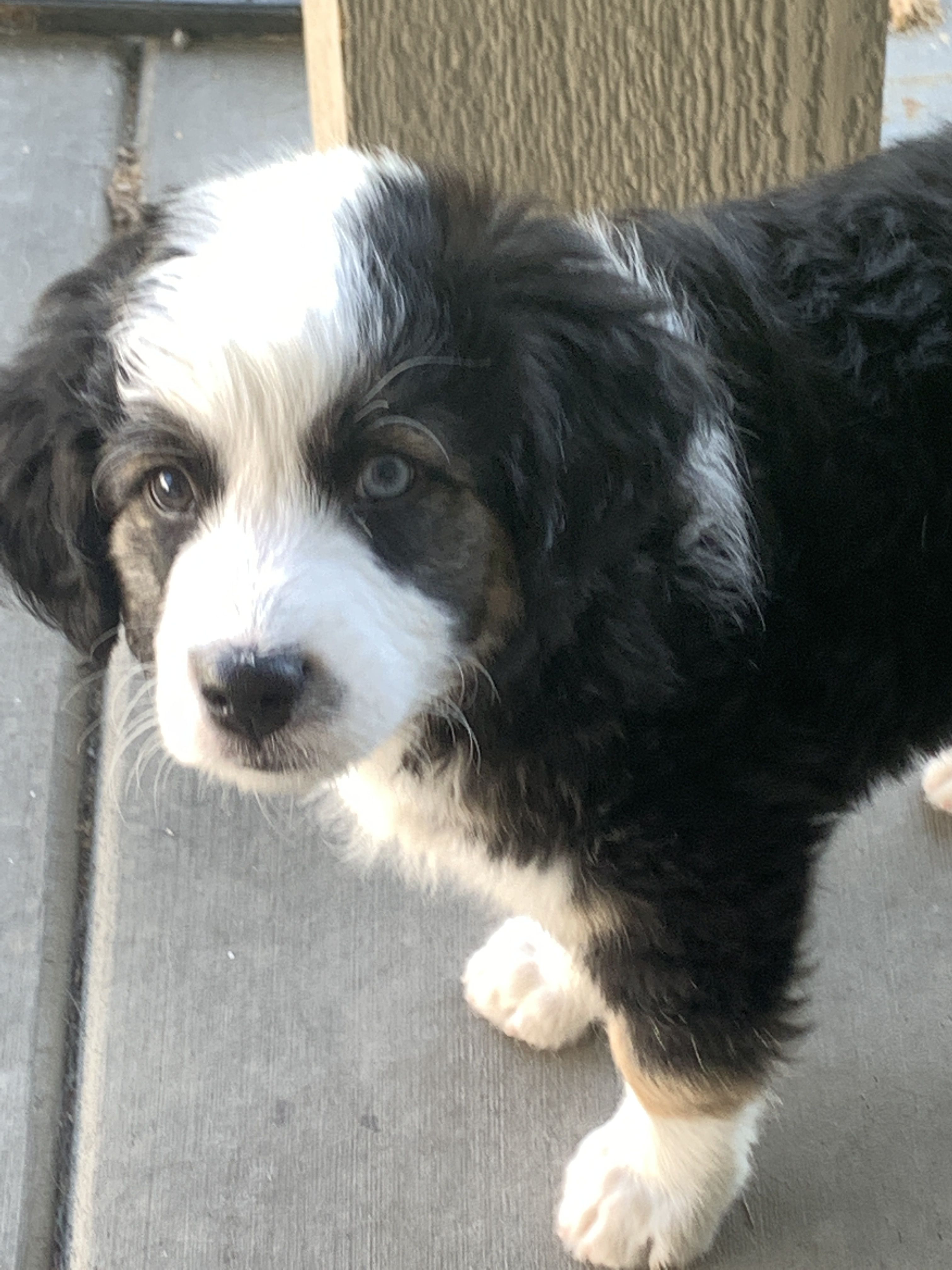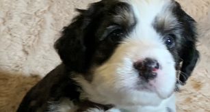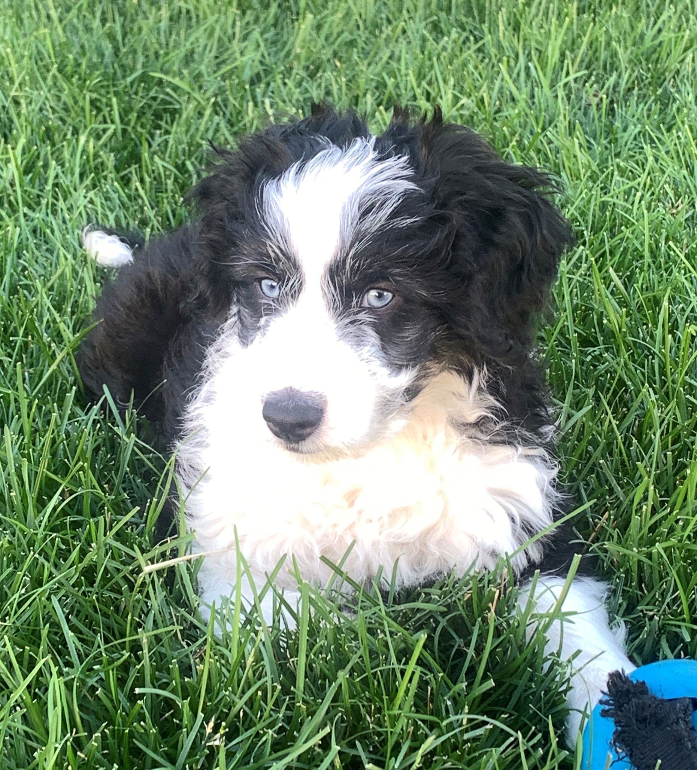 Daisy is a stunning F1 Miniature Aussiedoodle with a personality as unforgettable as her striking looks. With her intense blue eyes that seem to look right through you, she has a way of connecting deeply and instantly with everyone she meets.