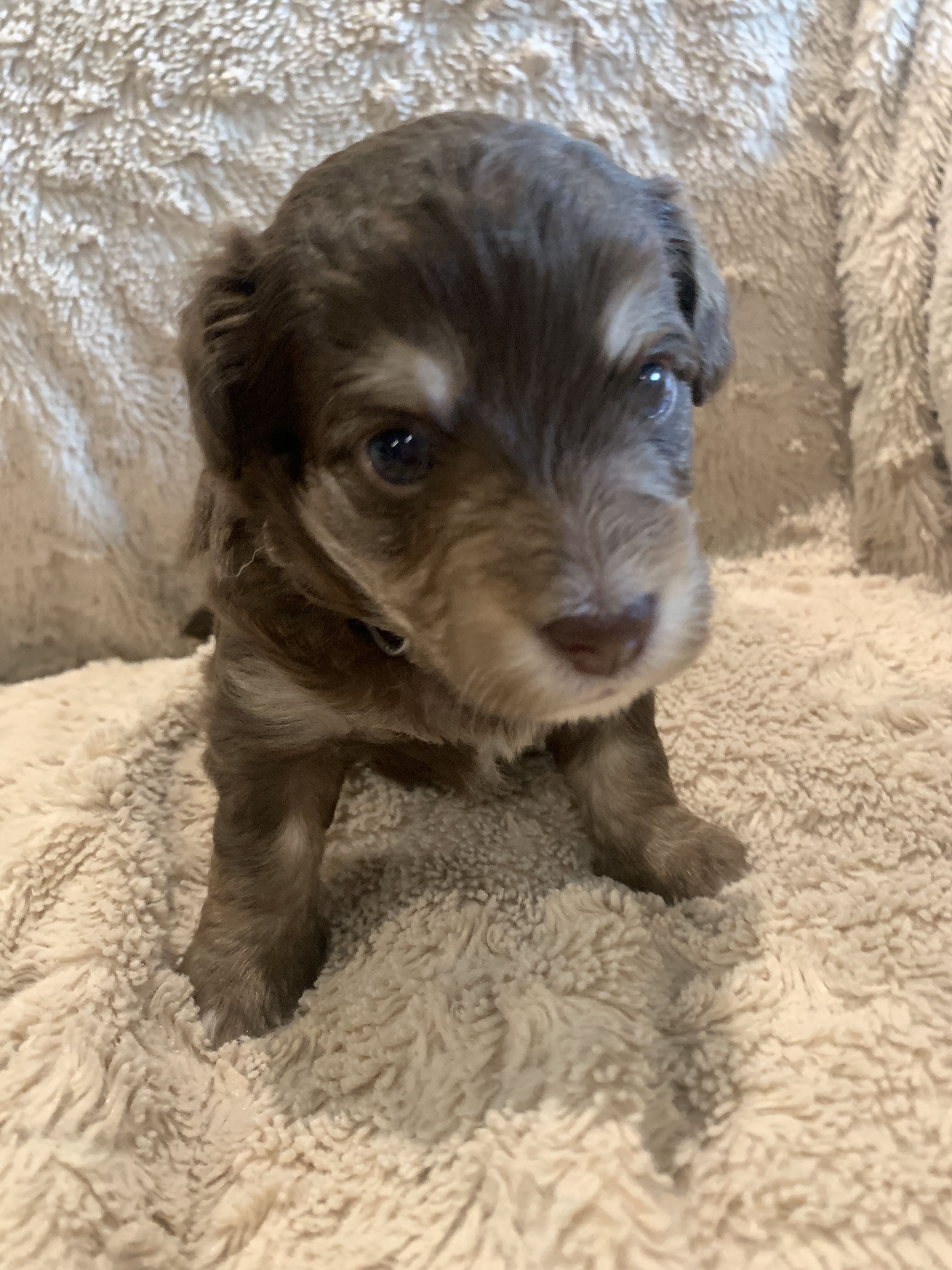 Daisy embodies everything we love about the Miniature Aussiedoodle: intelligence, playfulness, beauty, and a heart of gold.