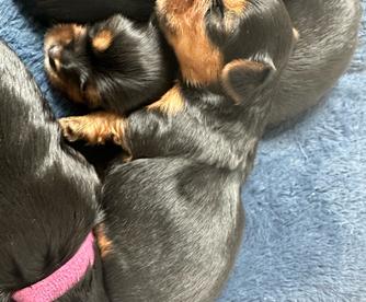 Our puppies include black and tan and black and gold. Colors will vary depending on the parent dogs.