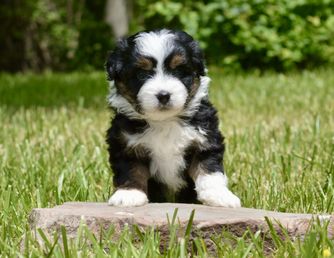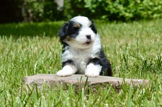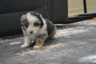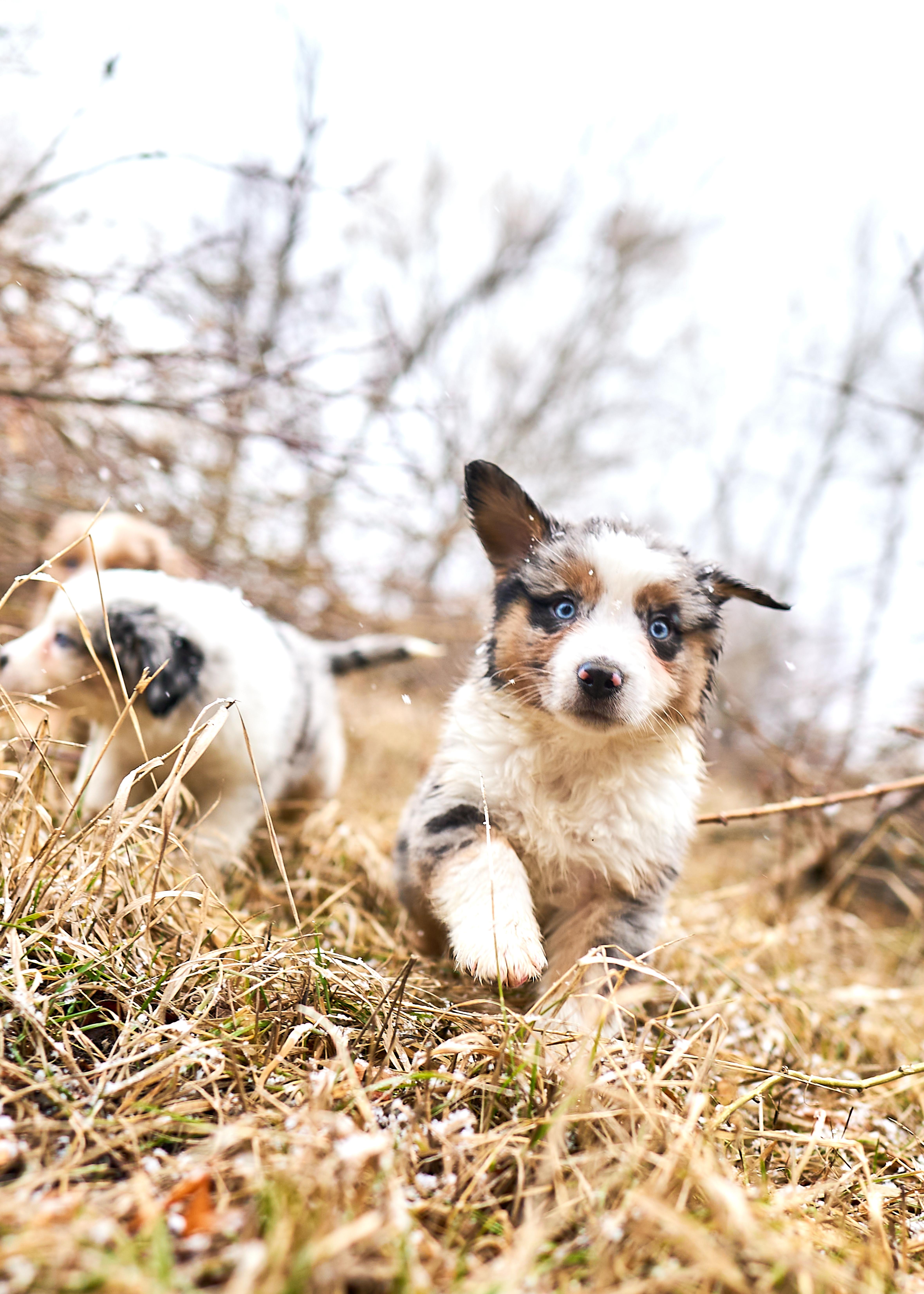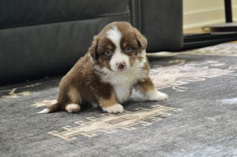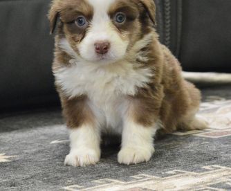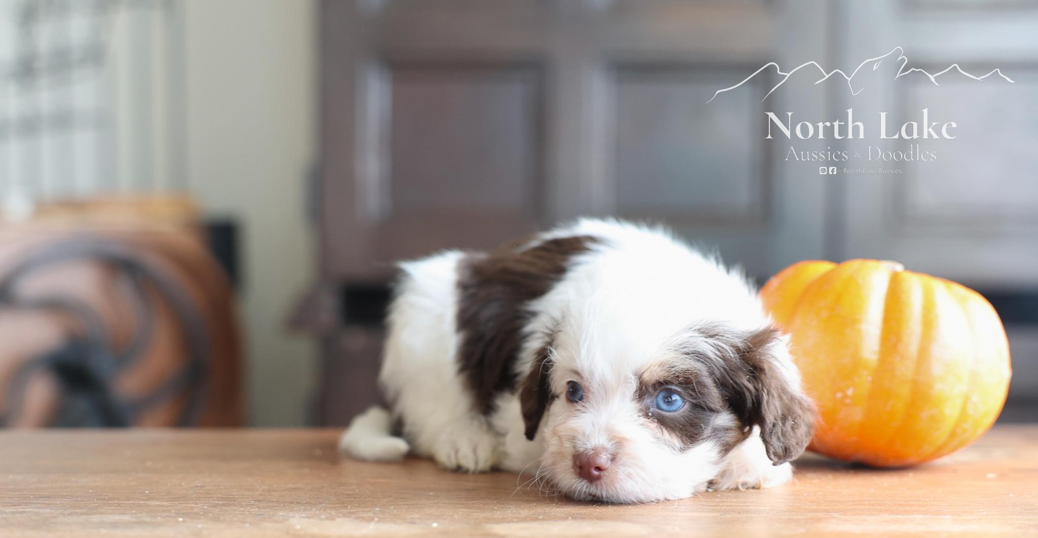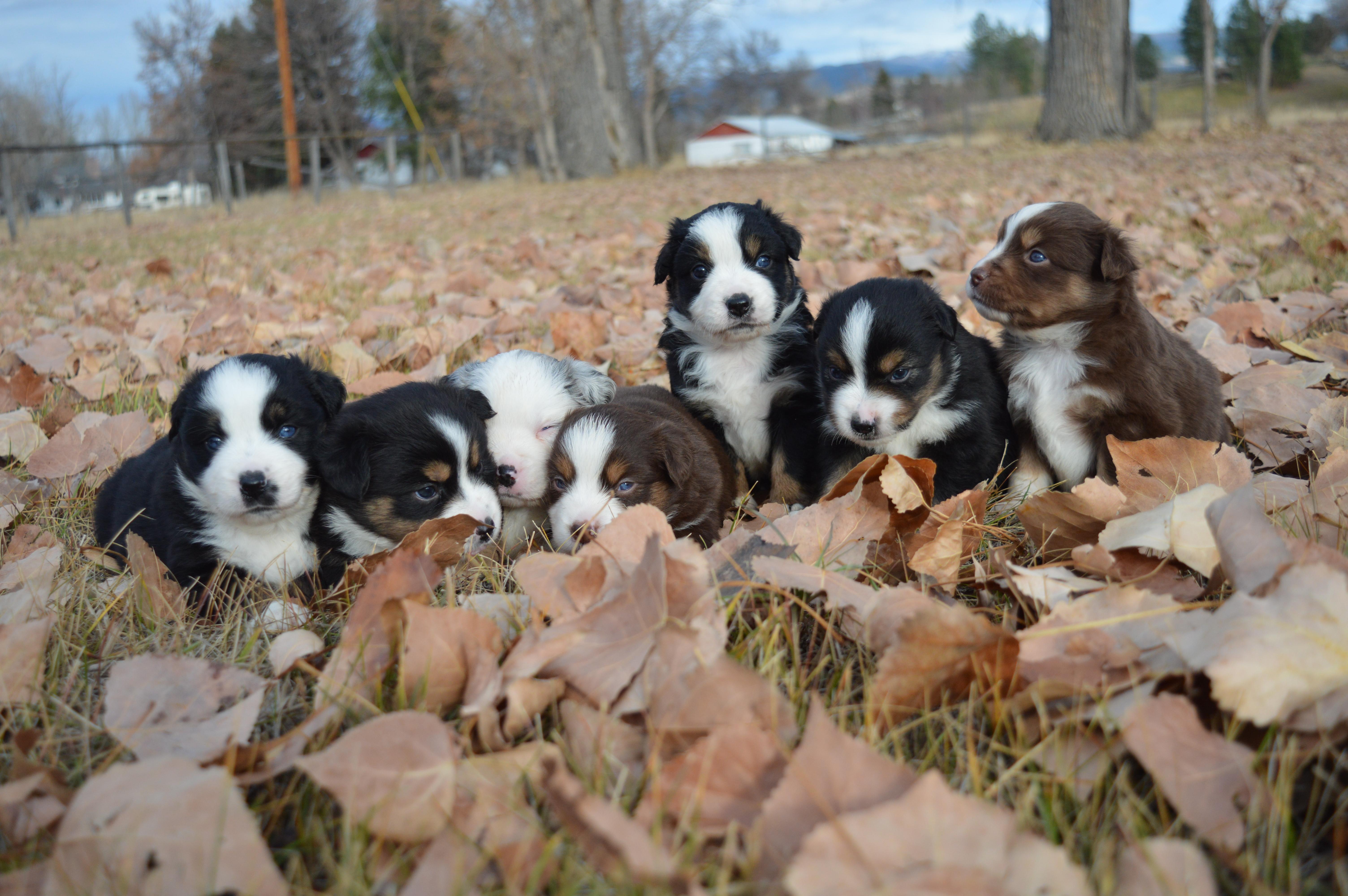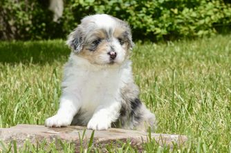 Our Miniature American Shepherd puppies include red tri-color, black tri, red merle, and blue merle. Miniature Australian Shepherd puppies include blue merle and red merle. Aussiedoodle puppies include brown and white, blue merle, red merle, black and white, black tri-color, and red tri-color. Colors will vary depending on the parent dogs.
