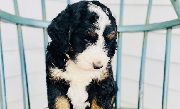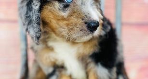 Our Bernedoodle puppies include sable, black and white, tri-color, phantom, and merle. Aussiedoodle puppies include blue merle, red merle, black and white, black tri-color, red phantom, and red tri-color. Colors will vary depending on the parent dogs.