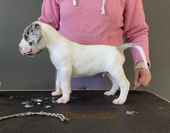 Our puppies include mantle merle, harlequin, mantle, merle, and black. Colors will vary depending on the parent dogs.