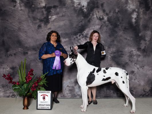 We are very involved in showing, and we started breeding to continue our line of incredible Great Danes. We usually only have a litter when we are looking to keep a puppy ourselves, so we only offer litters every few years. Our litters will have pet quality as well as show potential puppies available. We are focused on consistency and longevity in pedigrees we produce over multiple generations.