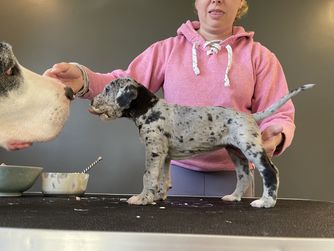 I feel so lucky to have found Emily from North Park Great Danes! She truly cares about her puppies and does so much for them while they are growing. She provides all different stimuli for the puppies which really makes such a difference. She is always there to answer any questions I have. This is my 4th Great Dane and I have truly never had such an easy transition bringing my puppy home.