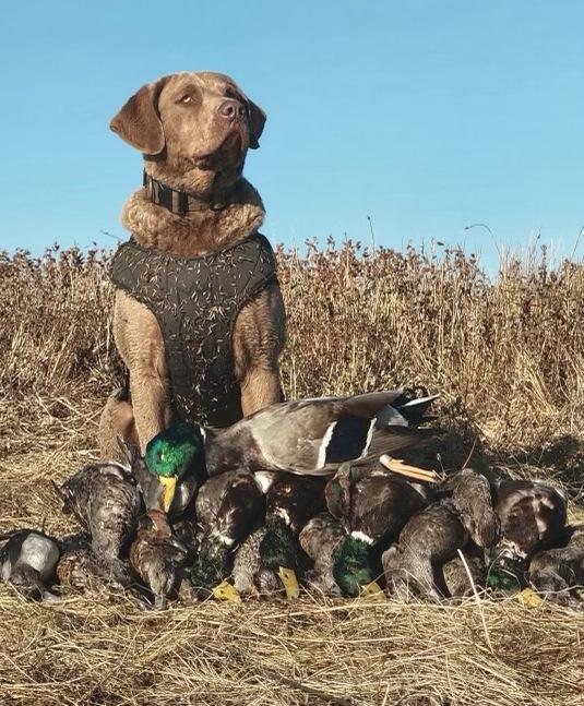 Since duck hunting as a teenager with a Chesapeake Bay Retriever we've never been without a desire to have at least on CBR as a hunter and family pet. Great Uncle Ferman turned us on to this breed telling us stories about his dog Goldie, whom he hunted ducks and geese with on the Missouri River. Goldie would not give up on difficult retrieves when a bird would land on a chunk of floating ice. Uncle Ferman would leave his coat once it got dark since Goldie was still out there somewhere trying to figure out how to complete the difficult retriever. Usually, the next moring Goldie would be laying on the coat that was left happily smiling with the bird by her side.