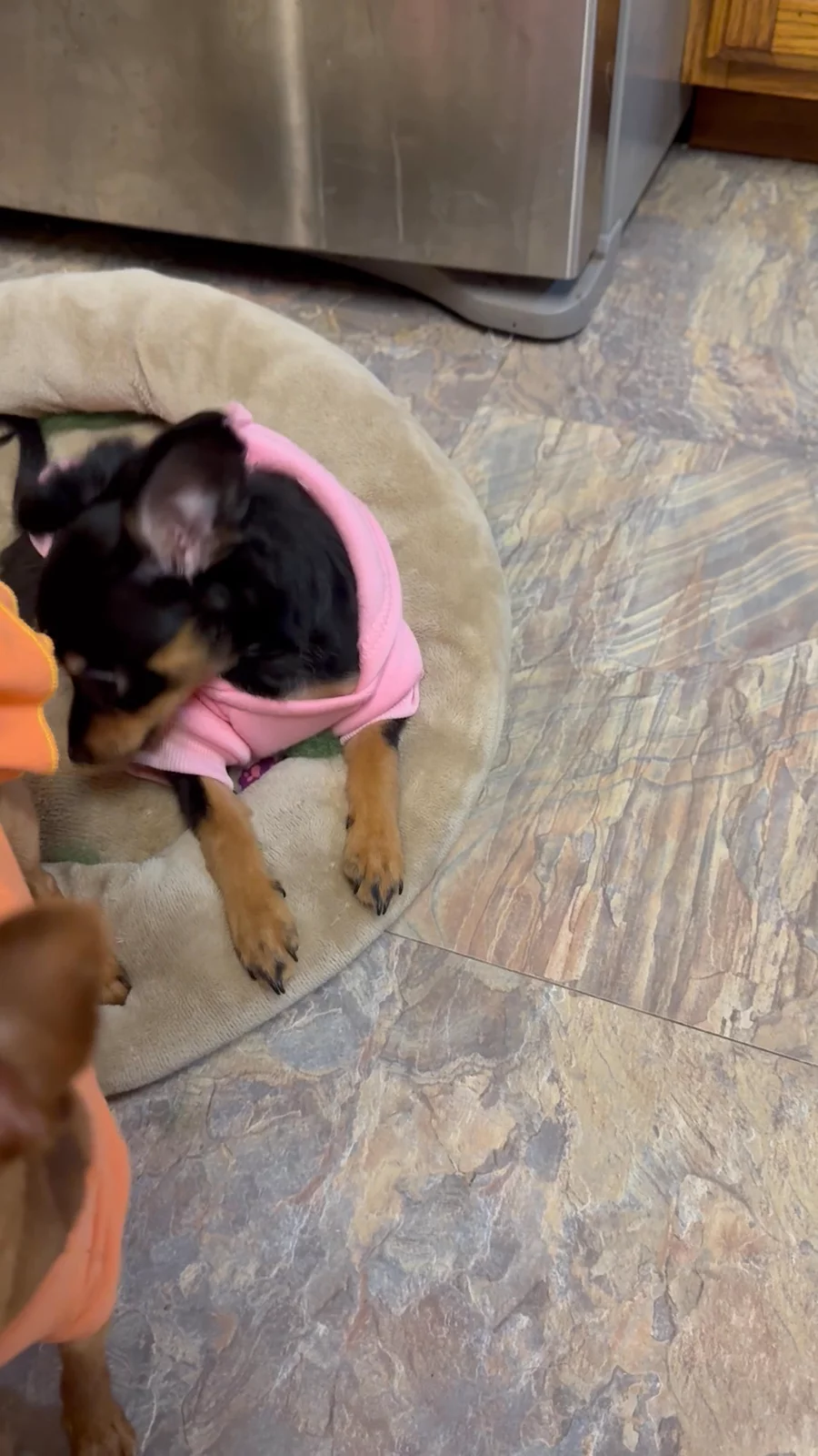 Introducing Chia, an adorable and spirited little red female. She has a delightful personality and enjoys engaging with her humans, often sharing her thoughts with them. Chia is friendly and sociable, never having met a stranger; she thrives on meeting new people who adore her as much as she believes they should. She takes great pleasure in wearing her stylish dresses and is a true exemplar of the breed standard, showcasing a sound structure. Chia is well-known and adored by the staff at her favorite espresso shop, eagerly anticipating her special treat at the drive-up window. She has a remarkable ability to capture attention and warm hearts with her charming demeanor. This charismatic little girl is set to live her best life as part of our family and small pack of Prague Ratters.