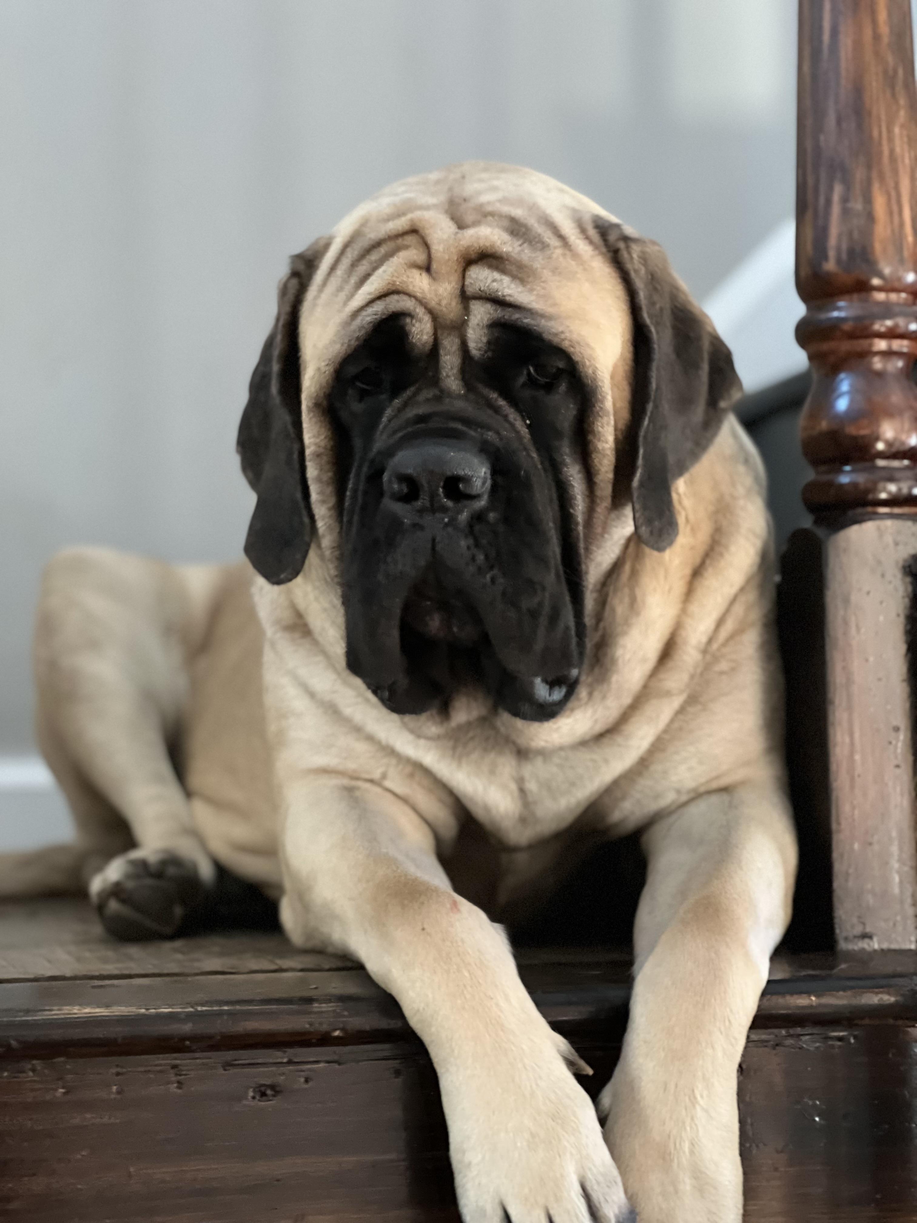 Harper is a female Mastiff. Carefully selected as a great representative of her breed, Holly decided to make her part of their program. Holly has passed Good Dog’s screening process, which involved a review of their breeding practices, environment, and the mental and physical health of their dogs.