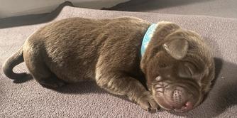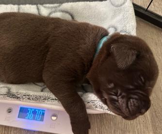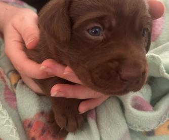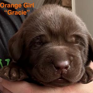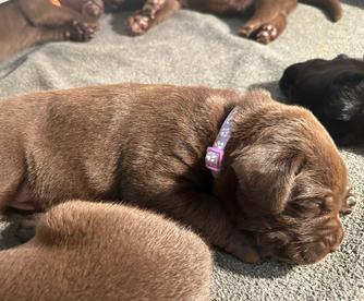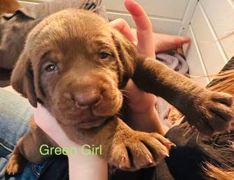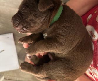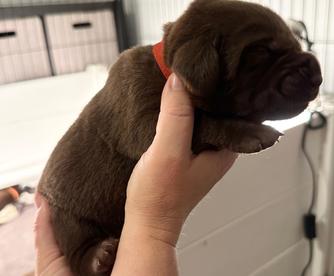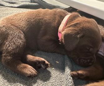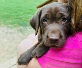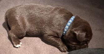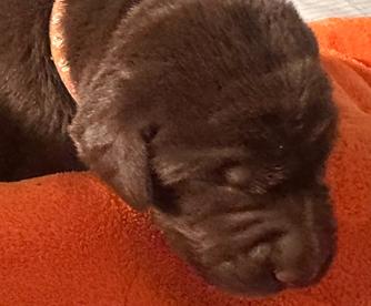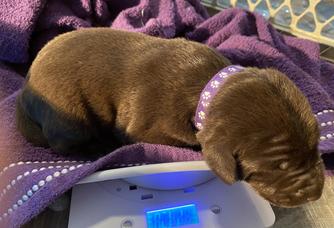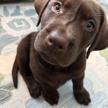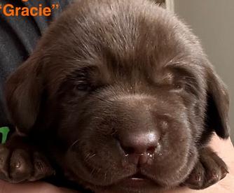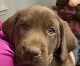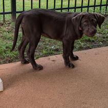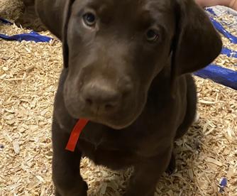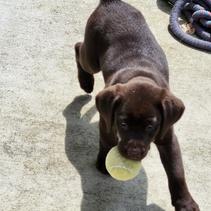 I was really lucky to get a Chocolate Lab on short notice because Faith had just allowed a buyer with extenuating circumstances relief from the purchase agreement. My lab girl is very smart and is learning fast--a testimony to her good genes. Coco just weighed in at 40 pounds at 16 weeks. I've kept her on the food that Faith recommended. She really loves people and is learning how to socialize with other dogs at puppy school. Thanks, Faith, for a beautiful specimen of the breed!