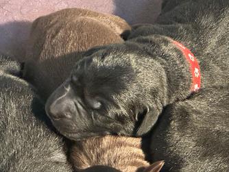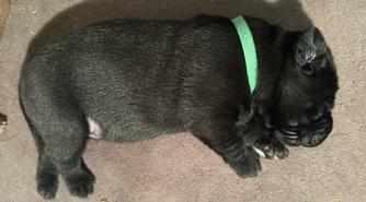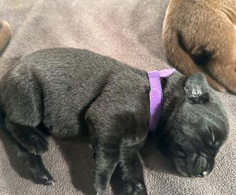 Dolly, a pretty black girl from our previous Beau X Sadie litter! Her new owners have done such an amazing job with her!