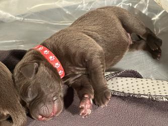 Puppies sure have gotten cute and chunky! They are two weeks old today and will be getting their first deworming. Their eyes should be opening sometime this week!