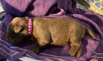 Faith is WONDERFUL! She has the biggest heart for her dogs and the sweet little puppies she raises. She was always willing to answer any questions and made us feel so included with all of the updates and pictures! Our sweet Rucker is so smart and has the calmest temperament🩵