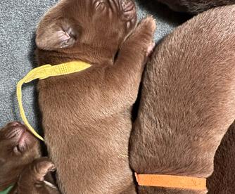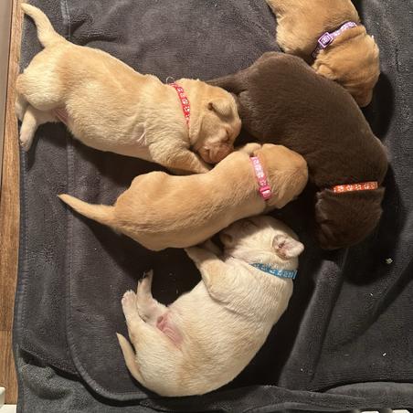 Our puppies include black, chocolate, and yellow. Colors will vary depending on the parent dogs.