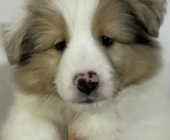 Our puppies are sable and white. Colors will vary depending on the parent dogs.