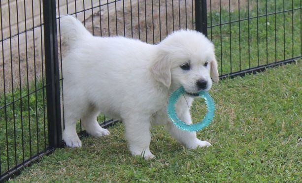 An Excellent representation of a Englich Cream Golden Retriever, Has received a CHIC number, Excellent hips, clear DNA on everything tested, Eyes, Heart and Teeth All CLEARED. Has Champion European lines and we bred her to a stud with INTERNATIONAL CHAMPION lines. EEG Raberg Ryker