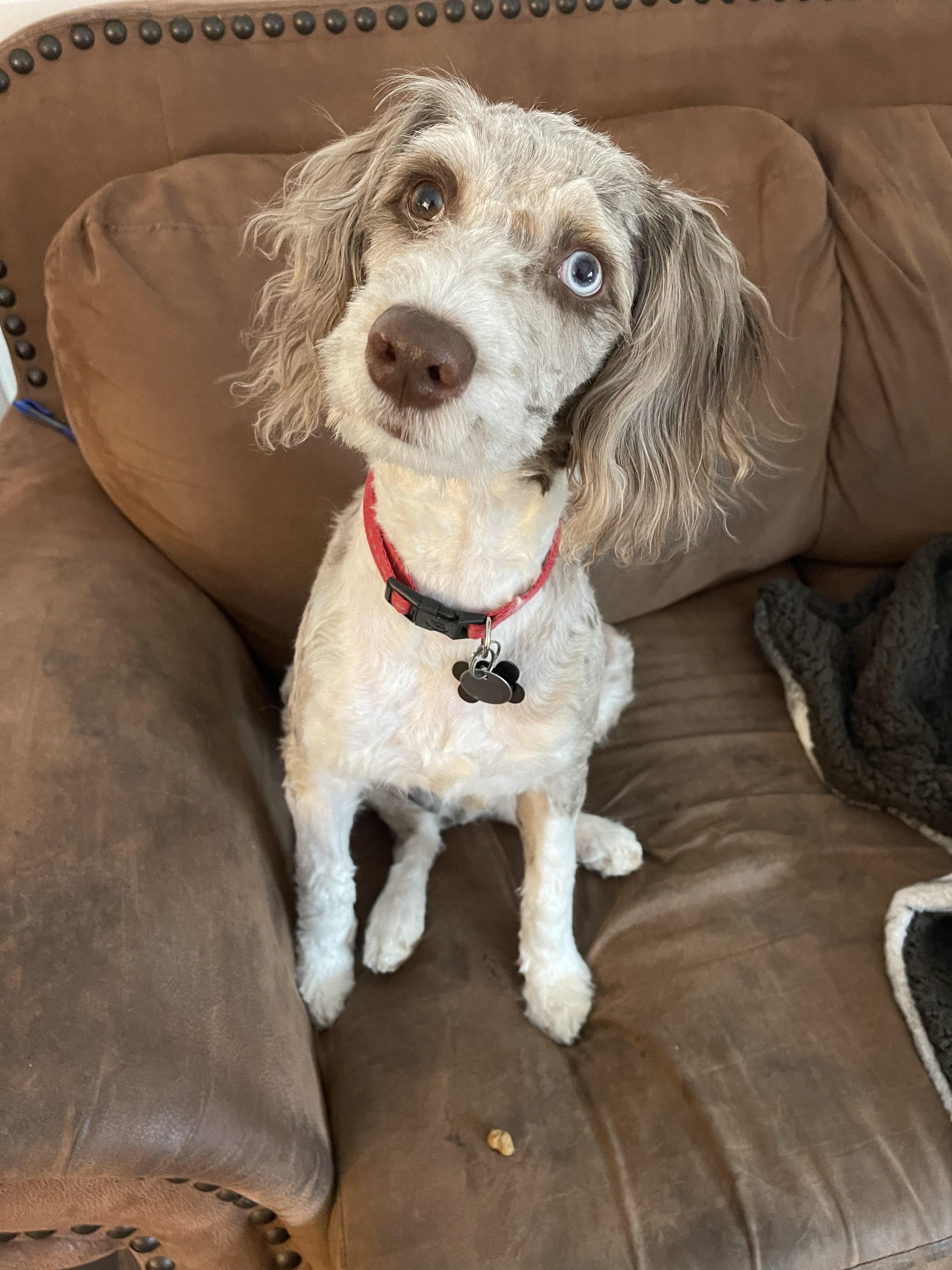 Cooper is a male Aussiedoodle. Carefully selected as a great representative of his breed, Brice decided to make him part of their program. Brice has passed Good Dog’s screening process, which involved a review of their breeding practices, environment, and the mental and physical health of their dogs.