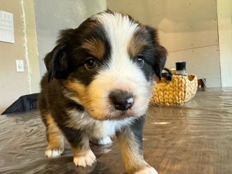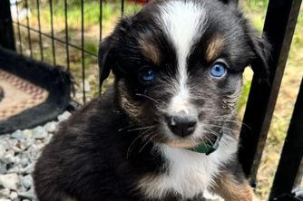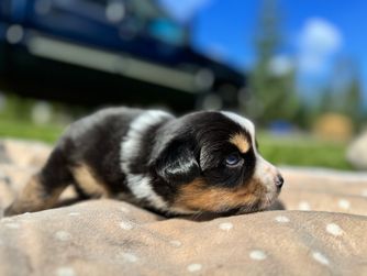 Our puppies include blue merle, black tri, and red tri. Colors will vary depending on the parent dogs.