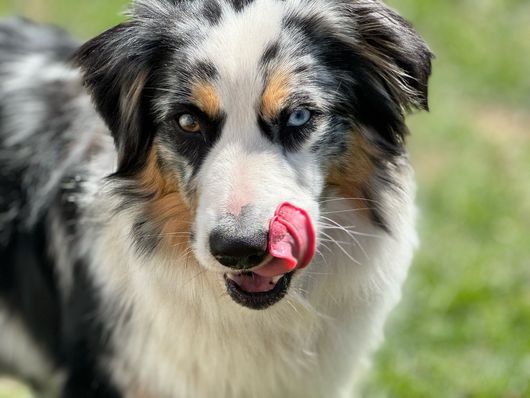 Sparkles is a female Miniature Australian Shepherd. Carefully selected as a great representative of her breed, Annie decided to make her part of their program. Annie has passed Good Dog’s screening process, which involved a review of their breeding practices, environment, and the mental and physical health of their dogs.