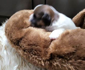 Amos is the last pup left. He is full of energy and personality. Loves people. Pending Vet check and vaccines this weekend he should be ready to go home immediately. Mom's about done nursing and he eats both wet and dry food well. 8 weeks on 7/12. Can hold if needed. Payment plans available.
