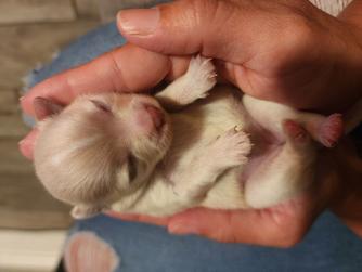 I make sure that the pups spend a lot of quality time with momma but also human bonding with us and our kids. I begin potty training around the 6 week mark using puppy pads. I maintain their coats by brushing them every other day and bathing when needed.
