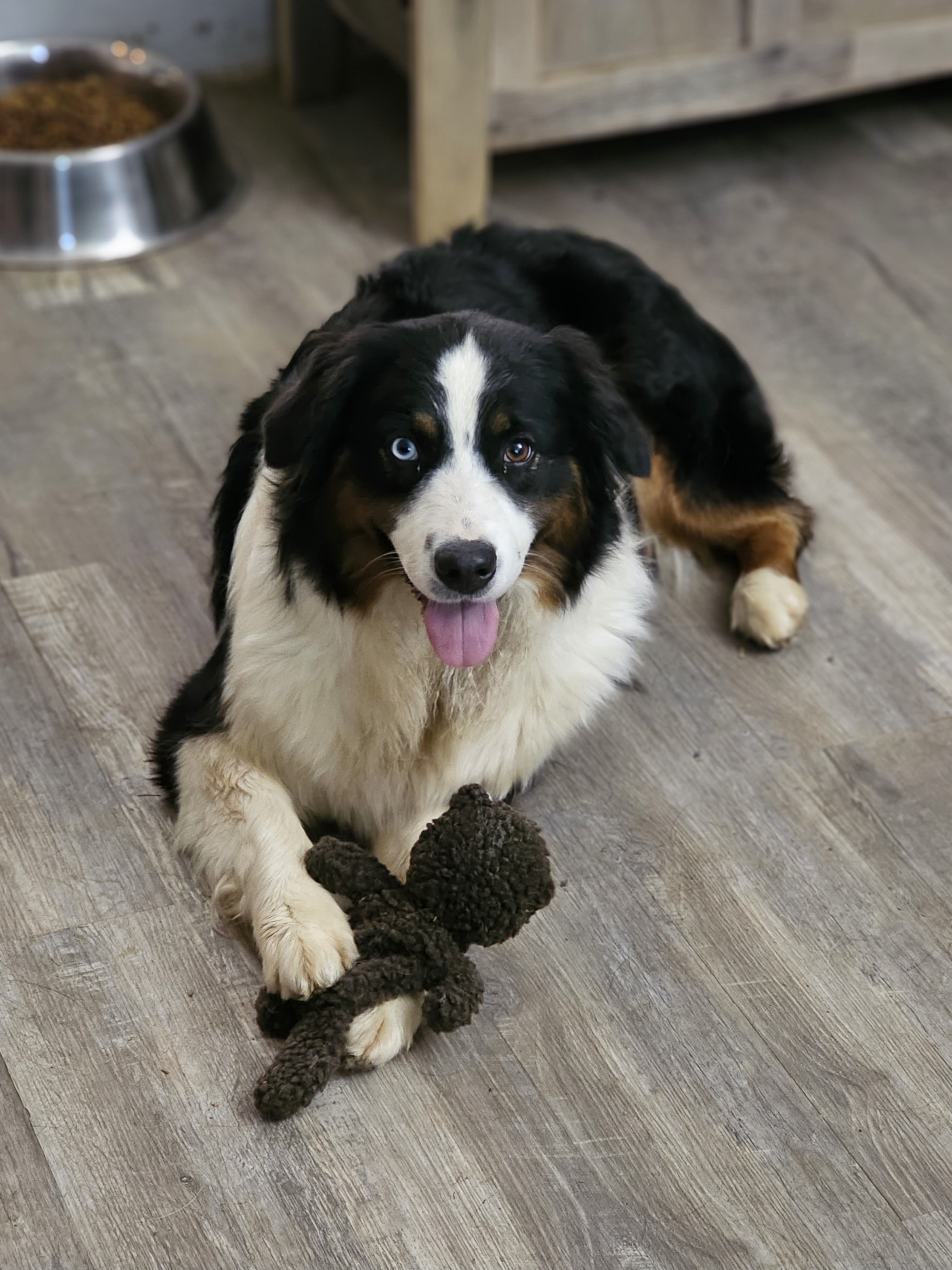 Casanova is a male Australian Shepherd. Carefully selected as a great representative of his breed, Loni decided to make him part of their program. Loni has passed Good Dog’s screening process, which involved a review of their breeding practices, environment, and the mental and physical health of their dogs.