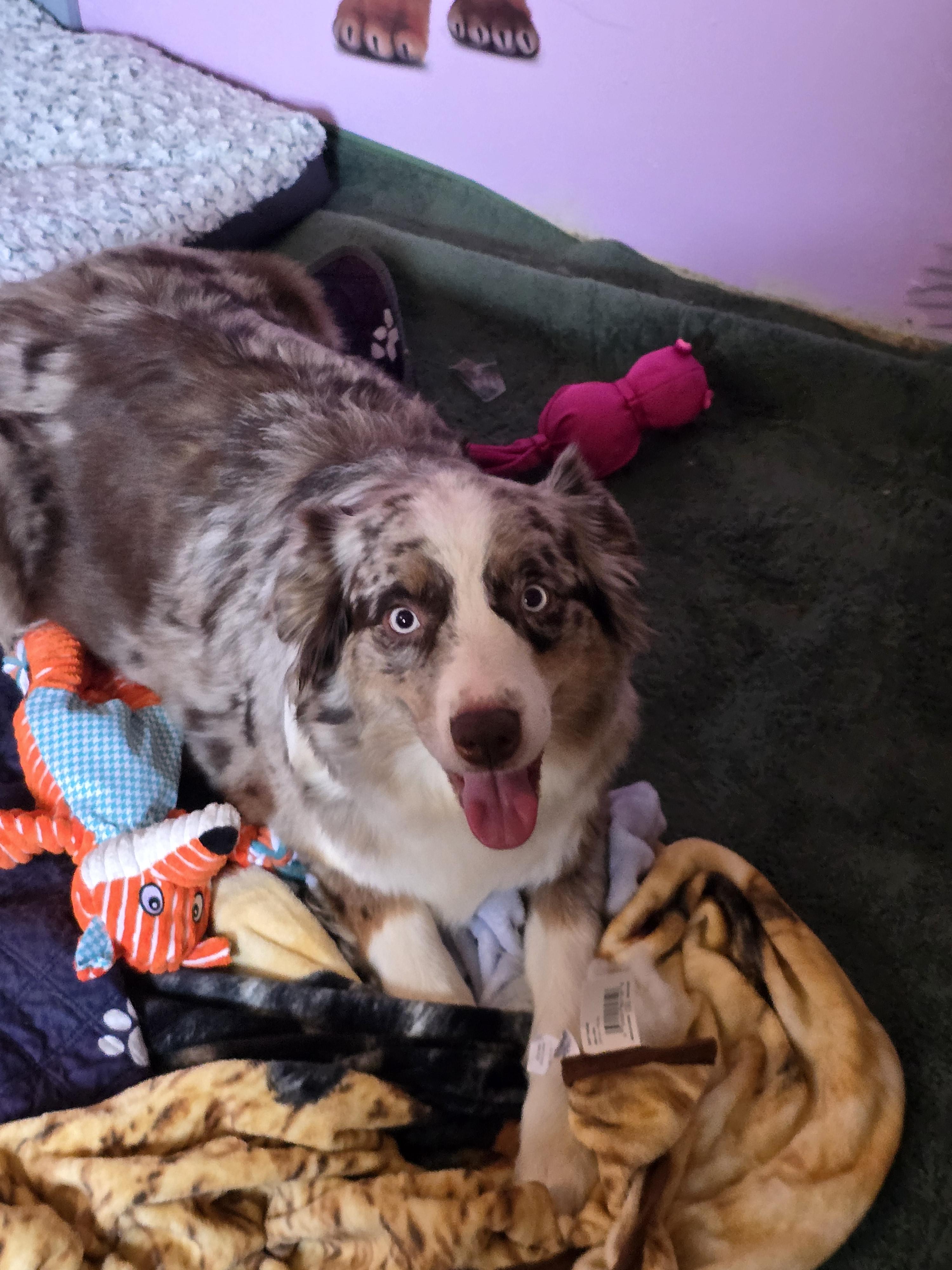 Anastasia is a female Australian Shepherd. Carefully selected as a great representative of her breed, Loni decided to make her part of their program. Loni has passed Good Dog’s screening process, which involved a review of their breeding practices, environment, and the mental and physical health of their dogs.