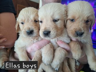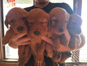 Our Golden Retriever puppies include dark golden, golden, and light golden. Colors will vary depending on the parent dogs.
