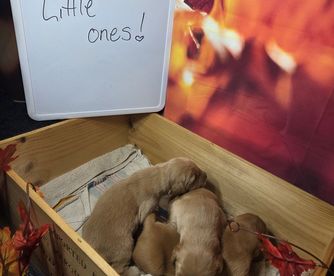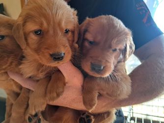 I'm Max & Mae S., the breeder behind Northern Lights Goldens located in Forest Lake, MN. We're Northern Lights Goldens in Forest Lake, MN. We have deep red to English cream and everything in between. We are a family run business. Our dogs are the biggest part of our family. We have expanded and also have German short haired pointers too.