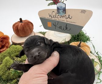 Kimber is a joy to our family. She's the most loyal, caring and affectionate dog. She's nearly 4 yrs old and only has one litter left before we retire her. She's not a fan of playing in water but isn't afraid of rivers and low levels. Her favorite is catching snow from the snowblower and can catch and retrieve all day if we had the time. She has a 70 word vocabulary and is always seeking a conversation. She's the best companion in car rides, loves her treats and dog parks and always seeking a playmate.