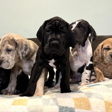 I'm Madisonn C., the breeder behind Northern Soul Great Danes located in Waseca, MN. We are a small in-home breeder of AKC Great Danes in Southern Minnesota. Our breedings focus on the health, structure and temperament of our Danes. Our Danes are raised in our home alongside our children, and are each an important member of our family! Our puppies are whelped by my husband and I, and stay with us until they are ready to go at 8 weeks of age.