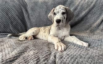 I had the BEST experience with Madisonn. She responded literally within minutes to my first message confirming the availability of my puppy, the purchase process was extremely easy and she’s very easy and friendly to talk to. Pickup was also very smooth and comfortable. Madisonn knows what she is doing, she’s VERY knowledgeable and cares a great deal about her dogs and pups. My beautiful puppy Koda is thriving and doing wonderful. She is my Best lil friend. Her build and personality along with her temperament are absolutely amazing. When investing in a Great Dane you need to find an experienced breeder and someone who knows everything there is to know about Great Danes, therefor, I would HIGHLY recommend anyone looking for a Great Dane contact Madisonn for your new furry friend ( : you won’t be disappointed!!