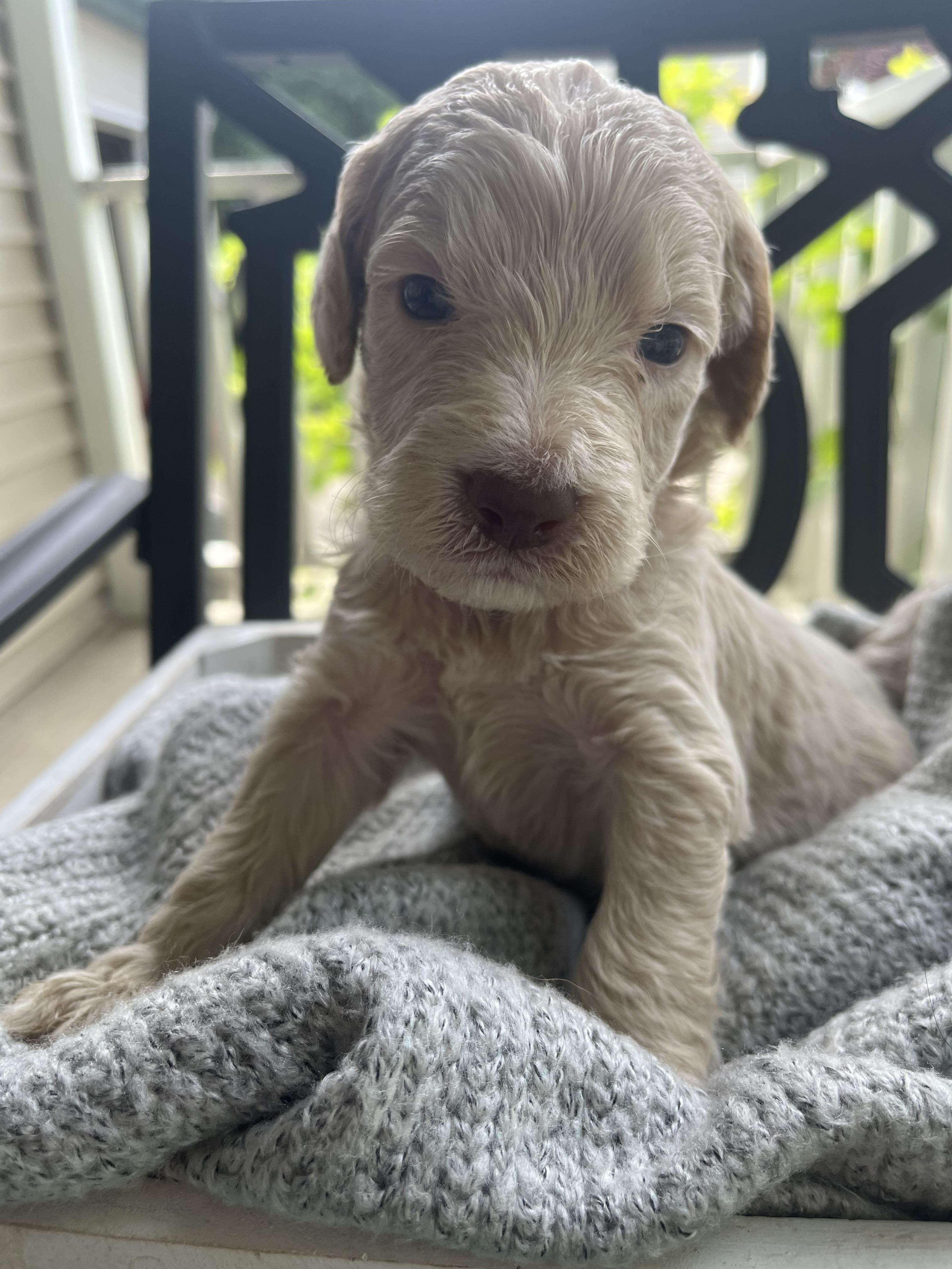 FYNN is a male Labradoodle. Carefully selected as a great representative of his breed, Jennifer decided to make him part of their program. Jennifer has passed Good Dog’s screening process, which involved a review of their breeding practices, environment, and the mental and physical health of their dogs.