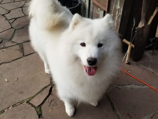 Dunkin is a male Samoyed. Carefully selected as a great representative of his breed, Hollie decided to make him part of their program. Hollie has passed Good Dog’s screening process, which involved a review of their breeding practices, environment, and the mental and physical health of their dogs.