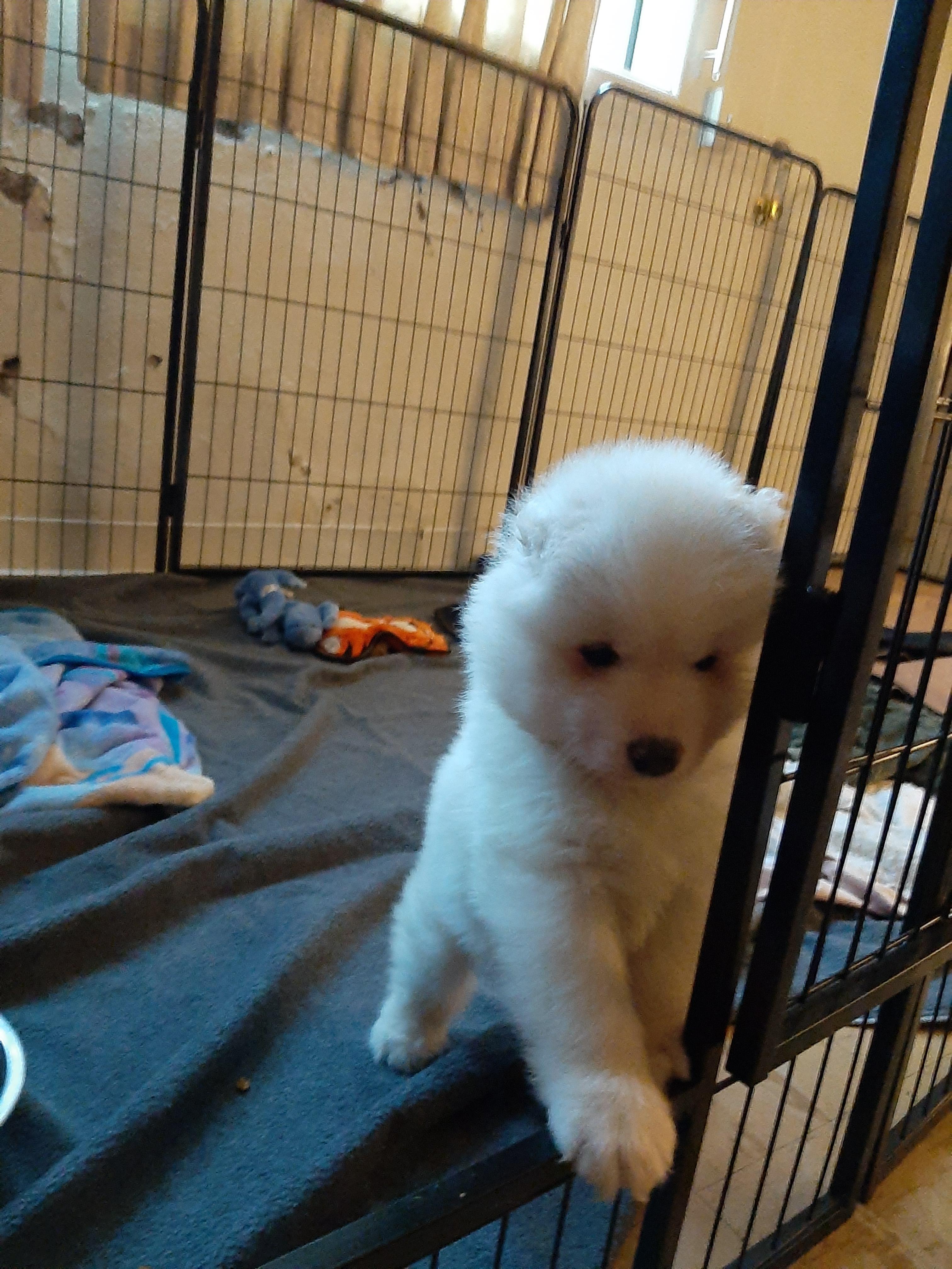Felon is a female Samoyed. Carefully selected as a great representative of her breed, Hollie decided to make her part of their program. Hollie has passed Good Dog’s screening process, which involved a review of their breeding practices, environment, and the mental and physical health of their dogs.