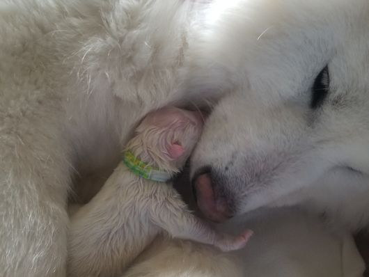 “Your puppy comes with almost daily interaction with grandkids ages 3 years to 9 years, 2 cats, and other dogs of various ages. I send you home with a big binder full of information and pictures of your puppy as well as it's sire and dam. This book is much like a baby book with pages for you to fill out as your puppy grows into adulthood and beyond. There are pages with vaccination records and even a spot to stick the label from the vaccine vial so you will have the lot # etc. if there is ever a issue with a vaccine you can double check to make sure it isn't that lot. Take your binder with you to your vet visit and have the vet stick the label from the vaccine he injects into your puppy and record wormings or any surgery etc. Your Veterinarian will be impressed with how organized you are in your record keeping on your pet. CD full of pictures of your pup from birth until he/she leaves our home to go to yours, with printed pictures inside as well as the front cover of your binder. You will also get a toy to take home that has the smell of your pups littermates and mom, a stuffed animal toy that coordinates with the color of his/her collar designated at birth. Also a chew toy that is safe for your puppy. A small bag of food that your pup has been eating, a White Pine collar that does not damage the coat and other gifts. In short, you become a member of our extended family with 24/7 support. Remember that there is no such thing as a silly question. We love correspondence from you with pictures of the puppy as it grows. Your Reservation fee of $2000.00 holds a puppy in your name here at our Kennels. If for some reason we do not have a puppy for you, say we only have females and you wanted a male then your fee will be returned unless you decide you would take one of the pups available, or you want on the list for the next litter. The Reservation fee is totally refundable until the pups are 2 weeks of age and there is a puppy that fits your wants, after that time period it is not, unless Northfork recognizes an unprecedented situation for an individual.”