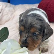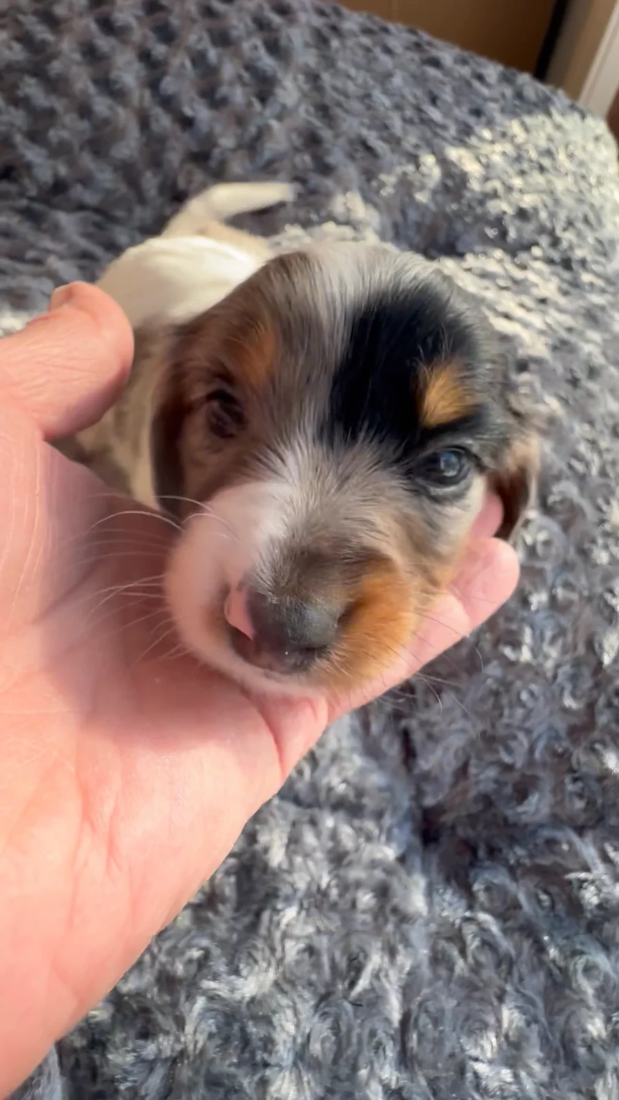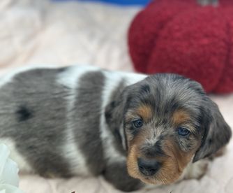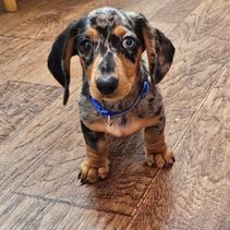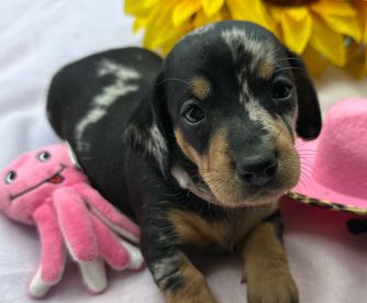 Sammy is a beautiful miniature Black and Tan Dapple.